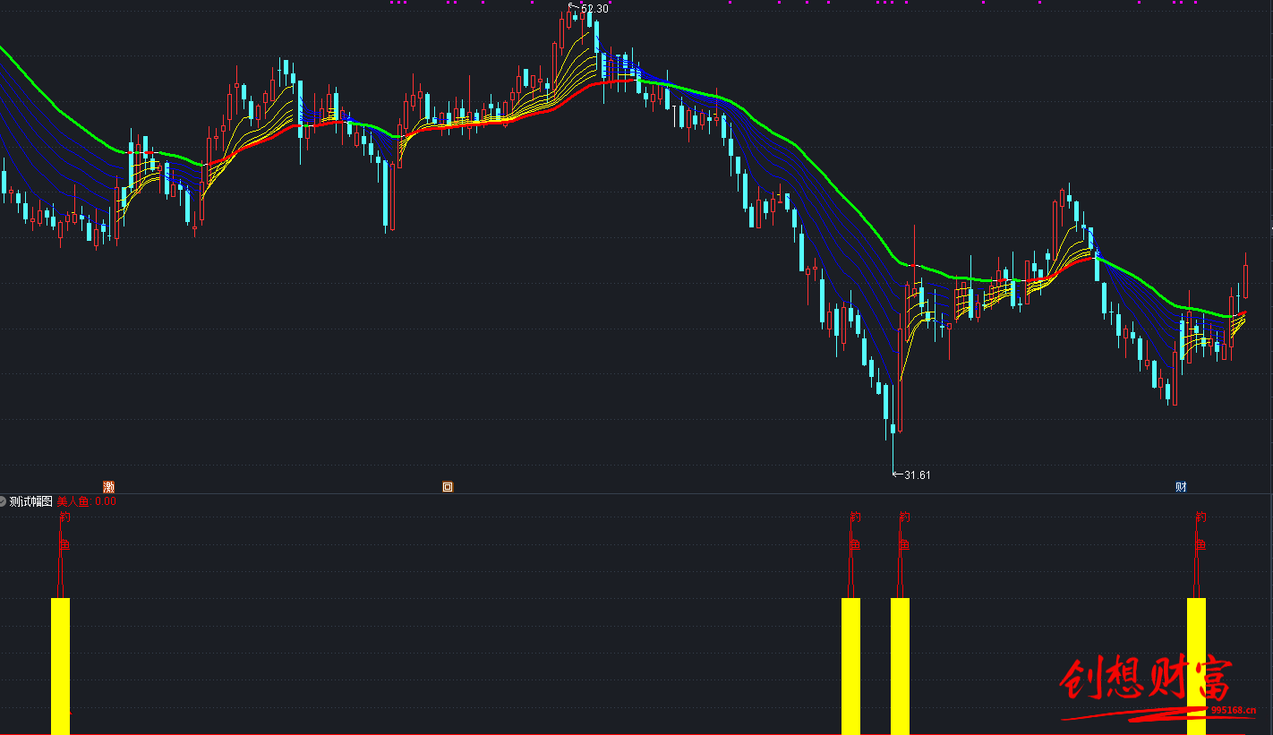 RSV:=(CLOSE-LLV(LOW,18))/(HHV(HIGH,18)-LLV(LOW,18))*100; K:=SMA(RSV,9,1); D:=SMA(K,3,1); 趋势J1:=3*K-2*D,COLORRED; 趋势J2:=EMA(K,3),LINETHICK1; Bbias :=(CLOSE-MA(CLOSE,24))/MA(CLOSE,24)*100; 反弹:= IF(crOSS(K,D) AND bbiAS< -6 AND D< 16 AND CLOSE>REF(CLOSE,1),80,0),COLOR00FF00; DRAWICON(反弹=80,趋势J2-0.005,1); 阶段底:=EMA(IF(L<= LLV(L,40),SMA(Abs(L-REF(L,1)),40,1)/SMA(MAX(L-REF(L,1),0),40,1),0),3)*10,STICK,COLORRED,LINETHICK2; V1:=AMOUNT/vol/100; V2:=(3*HIGH+LOW+OPEN+2*CLOSE)/7; V3:=SUM(AMOUNT,7)/V1/100; V4:=DMA(V2,VOL/V3); V5:=(CLOS